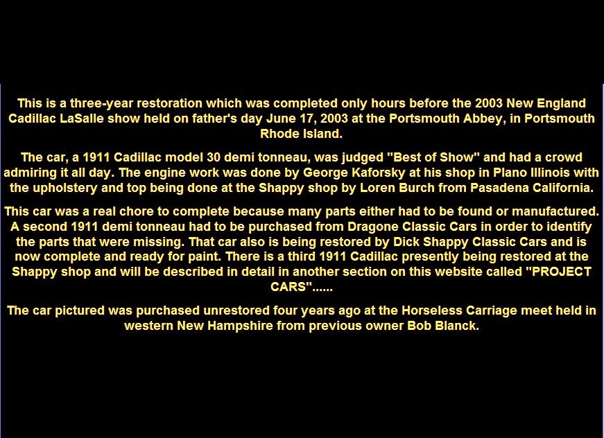 demitext 1911 Cadillac Model 30 Demi Tonneau won "Best of Show" at the June 17, 2003 New England Cadillac LaSalle show.