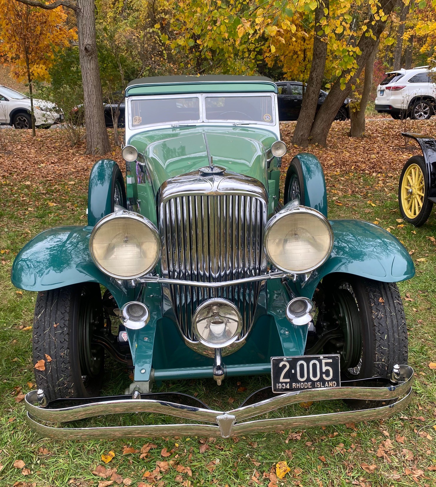 1934 Duesenberg on the show field displayed next to an early Stanley steam car.