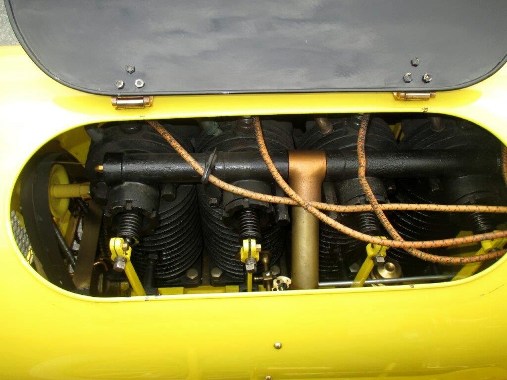 It was featured in the Air-Cooled: Keep It Simple exhibit at the Audrain Automobile Mu­seum in New­port, Rhode Island, in 2025. They share that it is “One of two of the Model 9 known to survive.” Regarding the car, manufactured by the James W. Brown Com­pany right here in Pawtucket, Rhode Island, Audrain also highlights that the “air-cooled combustion engine has a rich history dating back to the early 20th century. Initially, liquid-cooled engines were the norm, but air-cooled designs gained popularity due to their simplicity and reliability.” They also note the 20-horsepower, patented three-speed rear-axle-mounted gearbox transmission, elastic spring suspension, and 45-mile-per-hour top speed on this unique vehicle.