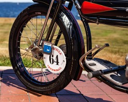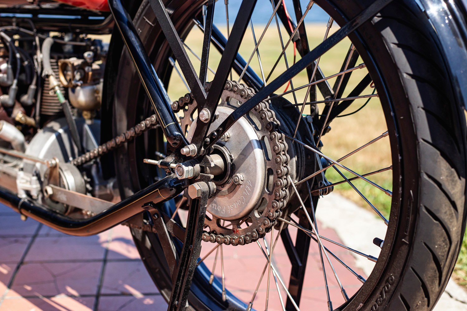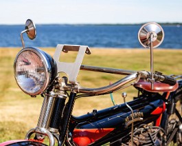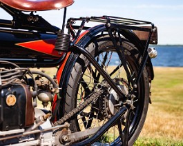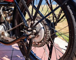 bike with the engine mounted inline with the frame and a single-speed chain drive. It featured a long chassis and