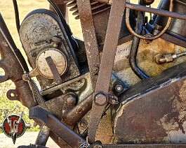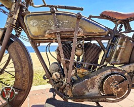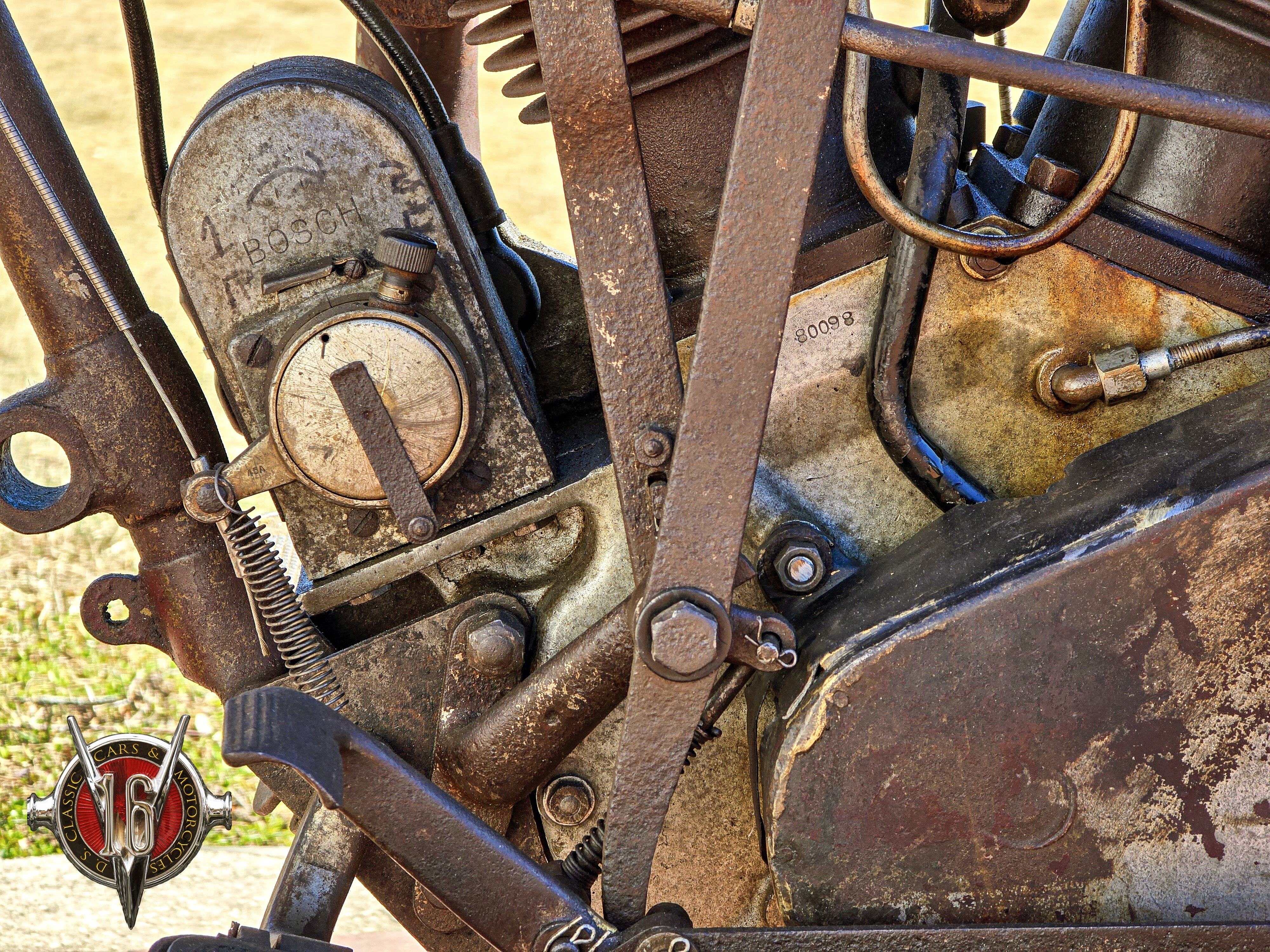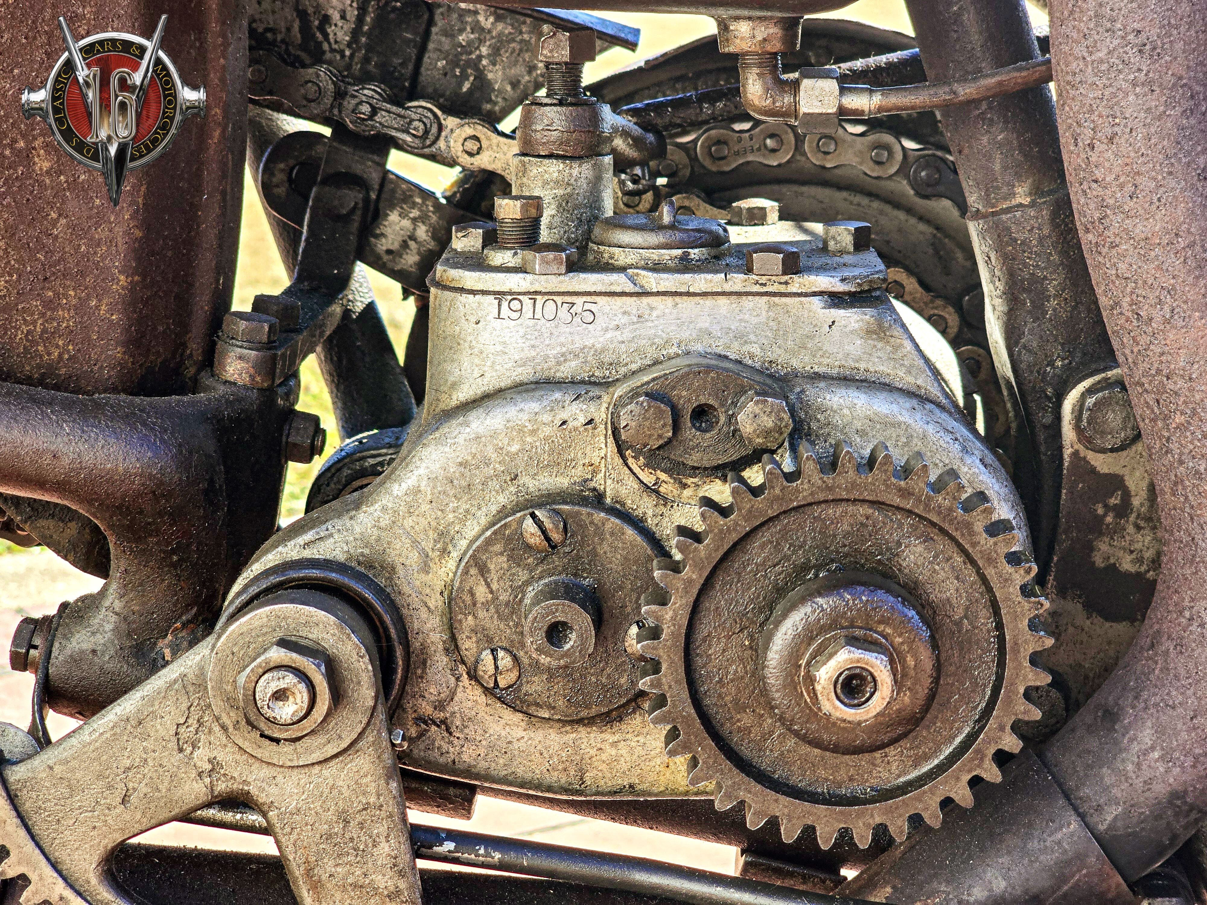 larger petrol tank, and a separate oil tank. This rare surviving example operates with a 1,100cc+ side-valve V-Twin