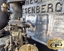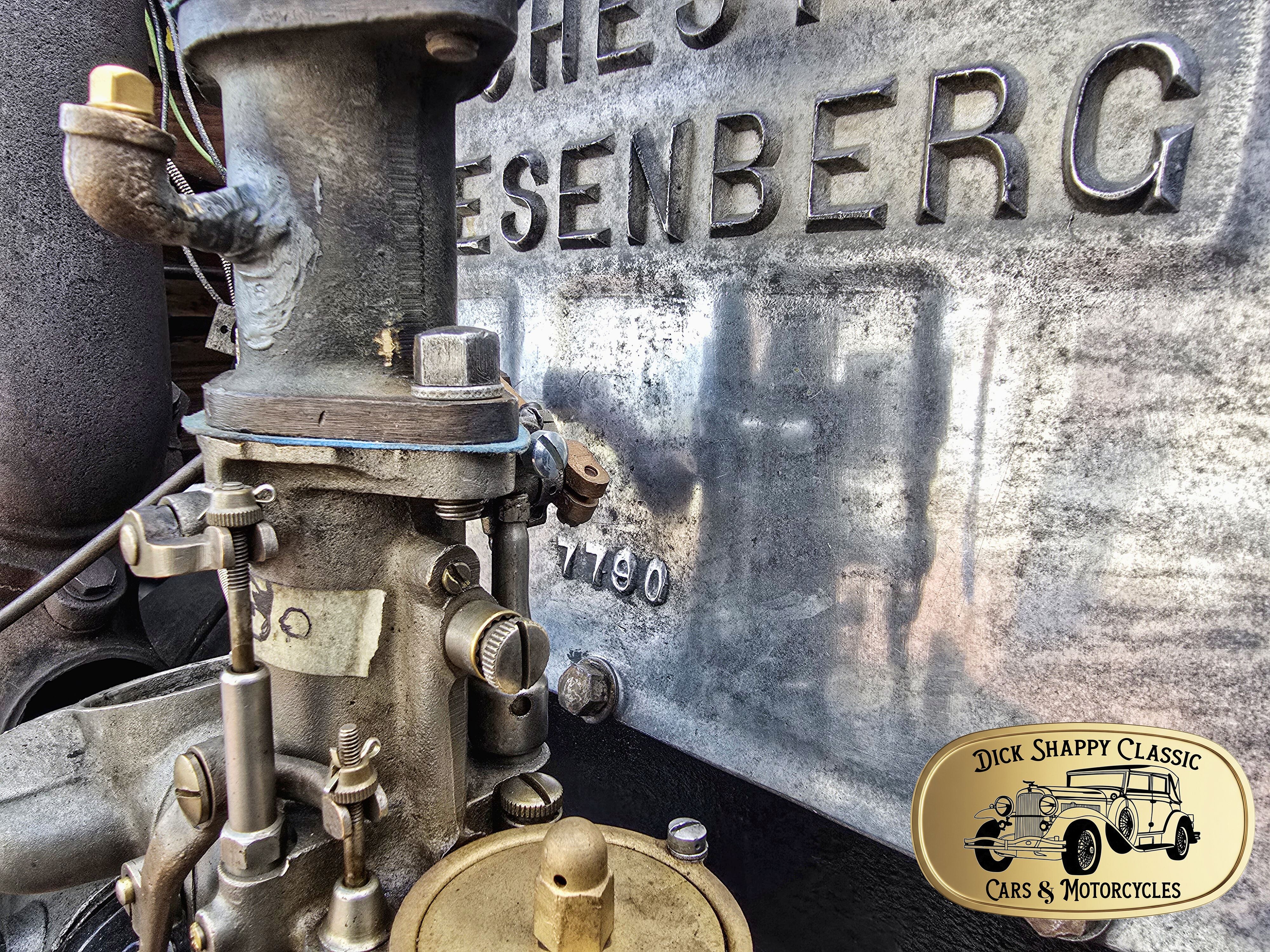 Fred Duesenberg’s patented “walking beam” overhead valve design. It sports the