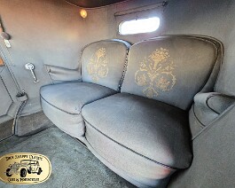 includes such features as interior hand pulls, an intricately embroidered rear seat, a vanity, and
